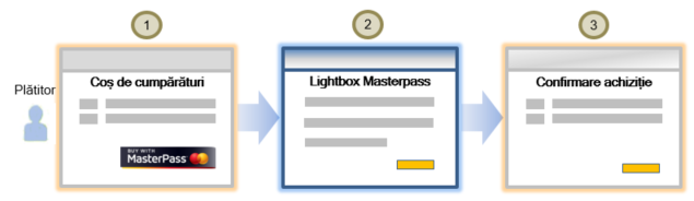 Masterpass Standard Checkout permite plătitorului să interacționeze cu portofelul electronic Masterpass fără a părăsi pagina dvs. web. Interacțiunea are loc într-un lightbox afișat peste pagina dvs. de validare.